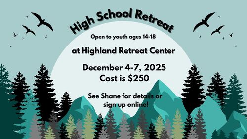 Attention high school aged youth! Join us for our winter retreat at Highland Retreat Center on December 4-7, 2025, it will be an amazing time to unplug from daily life and recharge, reconnect, and dive more deeply into your relationship with God!